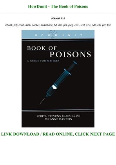 Free Download HowDunit.The.Book.of.Poisons Ebook Epub By Click Button. HowDunit.The.Book.of.Poisons Ebook it’s easy to recommend a new book category such as Novel, journal, comic, magazin, ect. You see it and you just know that the designer is also an author and understands the challenges involved with having a good book. You can easy klick for detailing book and you can read it online, even you can download it